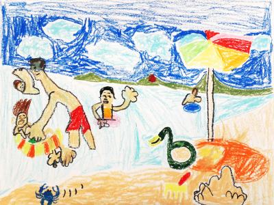 陳尚志 夏日的海灘(油粉彩繪畫)