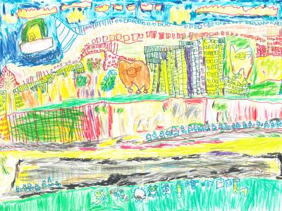 林倬云 我去非洲看動物(水筆及蠟筆繪畫)